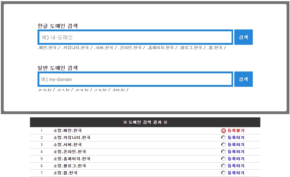저는 한글 도메인으로 소망을 쳐보겠습니다.