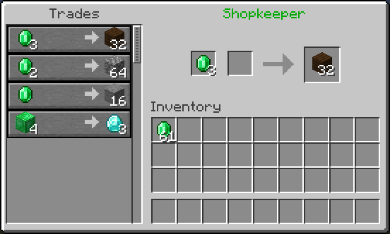 판매하고자하는 가격과 가격을 정확하게 판매 하는 맞춤형 마을 상점 주인 을 설정하십시오 . 공급이 무한한 관리 상점을 설정하고 상자에서 공급을 가져 오는 플레이어 상점을 설정할 수도 있습니다.